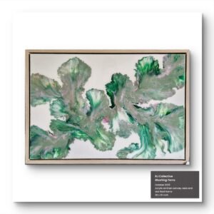 Blushing Ferns unfolds like new life after rain — soft layers of green, sage, and blush pink flowing across the canvas in gentle, organic motion. Each sweep of pigment reveals the balance between strength and serenity, evoking the quiet resilience of nature and the beauty found in its transitions.