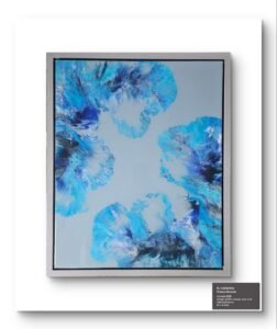 - Frozen Reverie – a medium sized fluid art piece focussing on introspection and reflection utilising a cool blue and grey palette